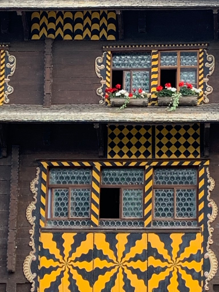 It is difficult to describe the absolute majesty of the unrelenting views. Colors that cry out “peace” – varying shades of blue and green in the water, trees, grasses; earthy browns in the houses and on the even darker rooftops; sparks of white on peaks and on the elegant hotels gracing the shore at each stop. The steepness is what bends the mind. Looking at the houses, I feel that if I stepped out one of those doors I would just tumble down the mountainside into the lake. Impossible roads etch sharp lines back and forth up the slopes.