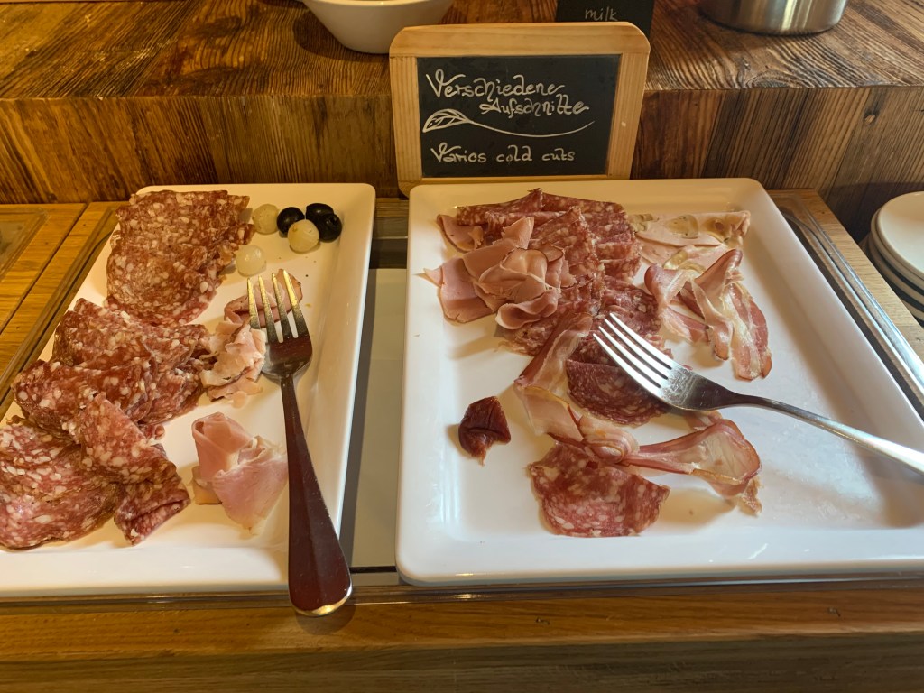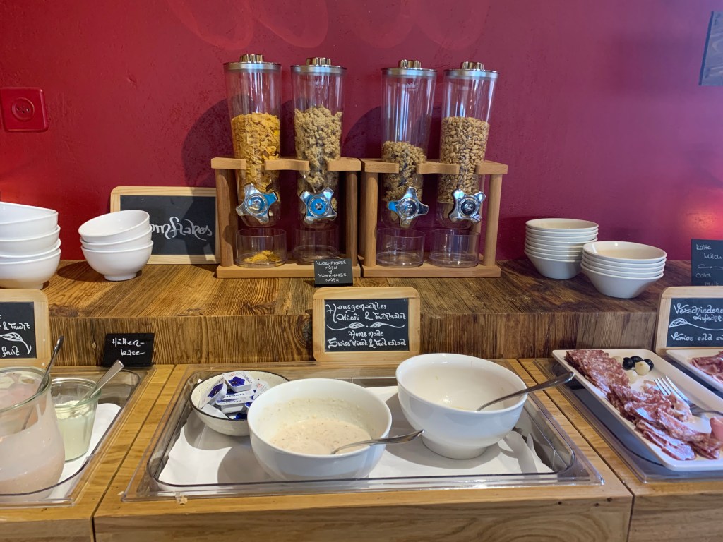 We made our way to the restaurant for breakfast. Wonderful breads, meats, cheese, fresh eggs you cooked yourself in a pot of boiling water, fruit, and real Swiss muesli. We enjoyed everything, especially the coffee which was closer to what we are used to than the espresso in Italy.